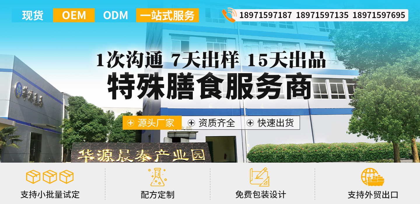 品牌名稱:華源晨泰 主營產(chǎn)品:特膳食品,膏滋,膠原蛋白肽飲品類,口服液等 品牌特色:源頭廠家 貼牌代加工