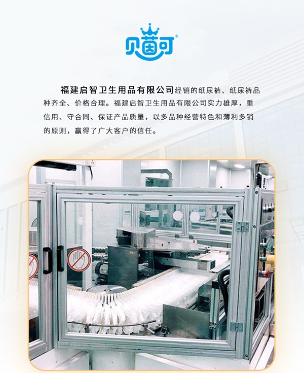 您所在位置:首頁>福建啟智衛(wèi)生用品有限公司>貝茵可大環(huán)腰紙尿褲
