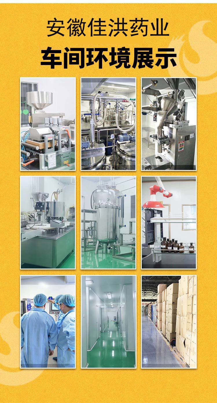 安徽佳洪健康產(chǎn)業(yè)有限公司位于全球最大的中藥材集散中心安徽亳州市,占地4600平方的現(xiàn)代化生產(chǎn)基地,其中生產(chǎn)車間占地2300平。倉儲面積2300平。國際先進的生產(chǎn)檢測設備,固體制劑、口服液、軟膠囊、保健用品、消毒用品、醫(yī)療器械、代用茶等生產(chǎn)車間,可生產(chǎn)加工片劑、硬膠囊劑、軟膠囊劑、顆粒劑、粉劑、凝膠等劑型,提供最完善的一站式OEM加工服務。獨立的工藝布局走向,能夠實現(xiàn)多品種、多劑型的同時聯(lián)動生產(chǎn)和單一品種的獨立生產(chǎn)。創(chuàng)造獨立的品牌及品牌OEM基地。