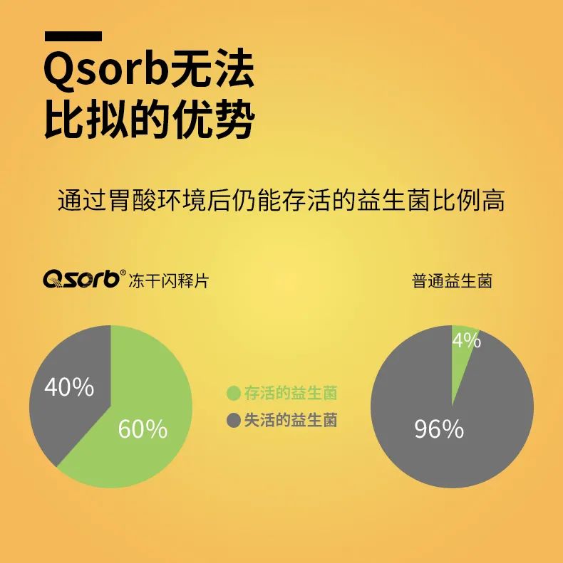 呵瑞益安益生菌凍干閃釋片,采用Qsorb凍干閃釋片藥物載體技術(shù),開啟即食,無需調(diào)制,直接口服,入口0.3秒即化,活菌直達(dá);3大進(jìn)口明星菌株,選用菌株符合衛(wèi)健委【可用于yingye食品的菌種名單】,每克添加>1800活菌;復(fù)合菌株+益生元FOS,純正配方,除了益生元,就是益生菌;不添加防腐劑、香精、色素,不含脂肪;采用歐盟軍工級雙鋁泡罩專利包裝,強(qiáng)抗氧化,常溫下儲存5年,產(chǎn)品活性扔保持80%以上。