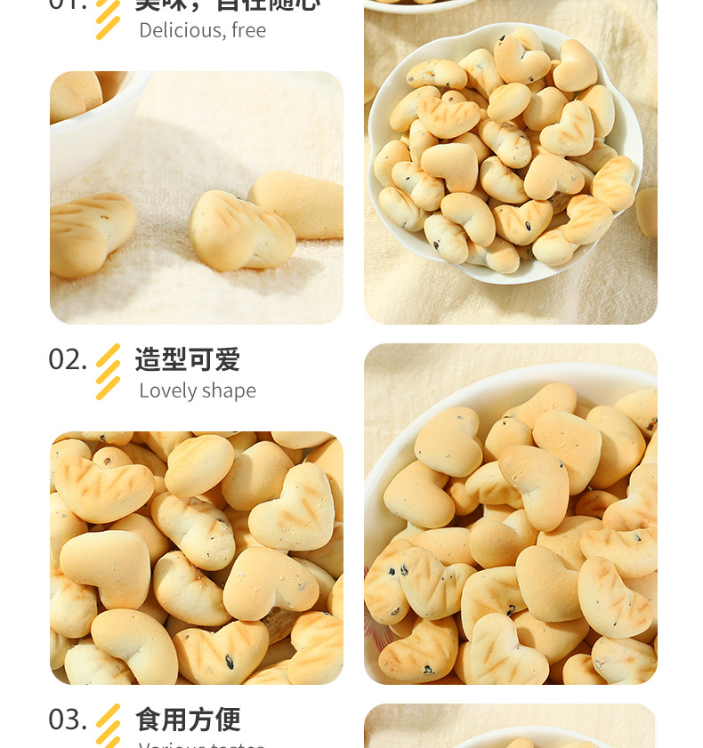 定制源頭愛心造型芝麻餅干500g 兒童休閑零食OEM貼牌餅干定制加工