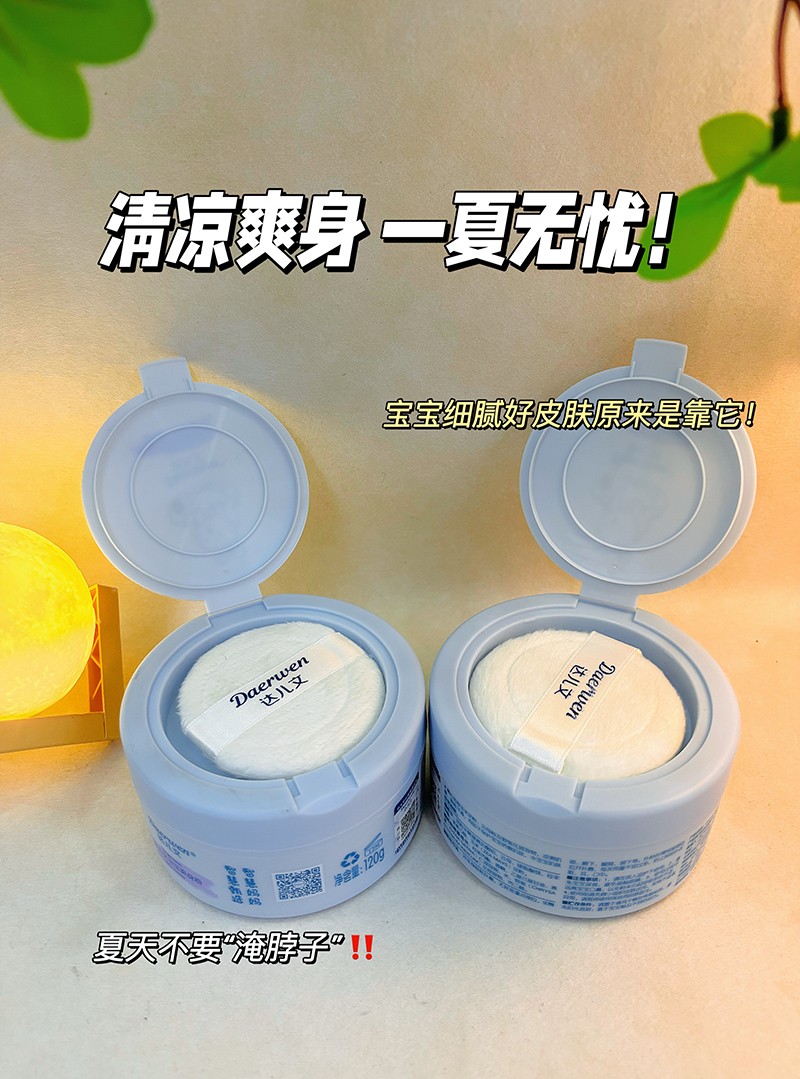 達(dá)兒文寶寶爽身粉,粉質(zhì)細(xì)膩,不溶于水,清涼干爽。爽身防痱,有效隔離汗液。
