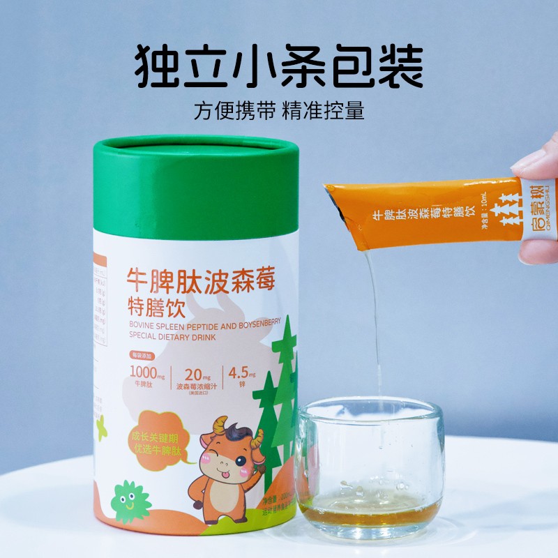 每袋添加牛脾肽1000mg、波森莓濃縮汁20mg、鋅4.5mg