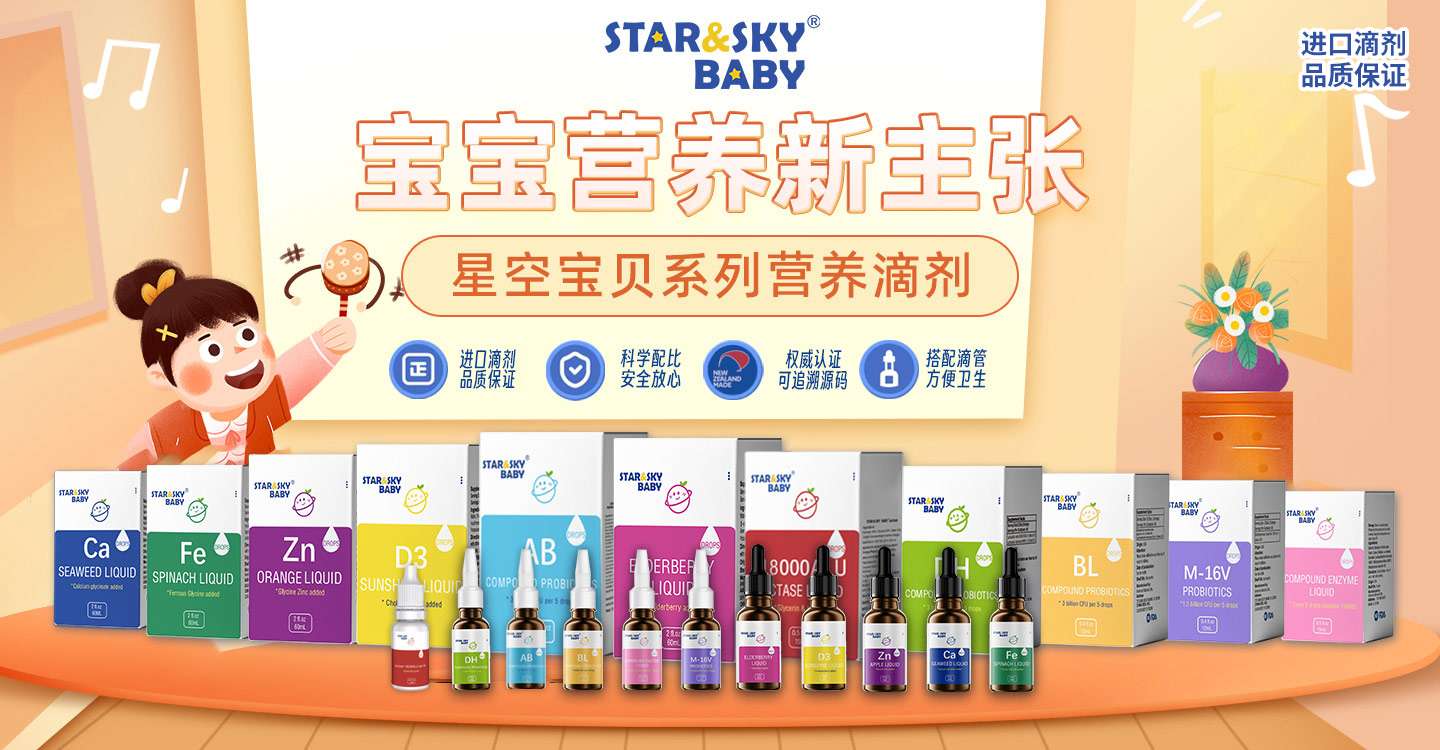STAR&SKY BABY(星空寶貝)專為寶寶研發(fā),營養(yǎng)守護、成長不講究。擁有新西蘭、美國技術(shù)領(lǐng)先的保健品及營養(yǎng)食品生產(chǎn)企業(yè)供應(yīng)鏈。其中新西蘭生產(chǎn)企業(yè)是首批在華注冊編號的境外企業(yè)。工廠位于新西蘭最大的城市奧克蘭,擁有數(shù)字化綜合性大型工廠和獨立的科研團隊,擁有營養(yǎng)保健品、配方乳粉兩大廠區(qū),共約3.6萬平方米。工廠目前已通過PMP、HACCP、NZDMADE、NFS、ISO2000等認證。液體鈣、鐵、鋅、D3、鈣鎂鋅、接骨木莓、戊糖片球菌、羅伊氏乳桿菌、鼠李糖乳桿菌(HN001)、乳糖酶、M-16v益生菌、BL復(fù)合益生菌、復(fù)配酶制劑(消化酶)等滴劑一經(jīng)推出,即滴即食、不卡喉,食用方便。專注寶寶健康成長,深受寶媽和寶寶的喜愛。