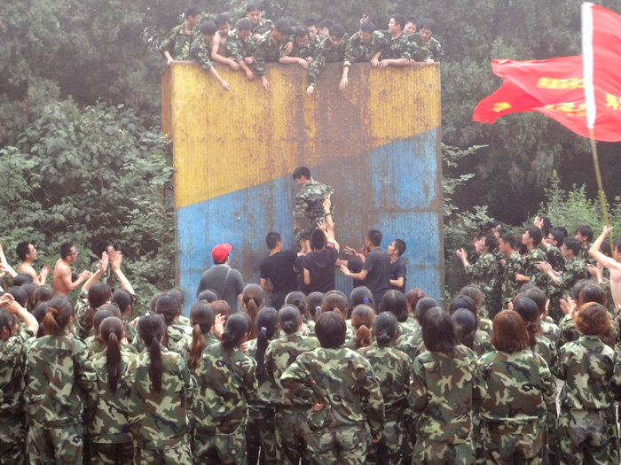 拓展訓練中隊員勇攀畢業(yè)墻