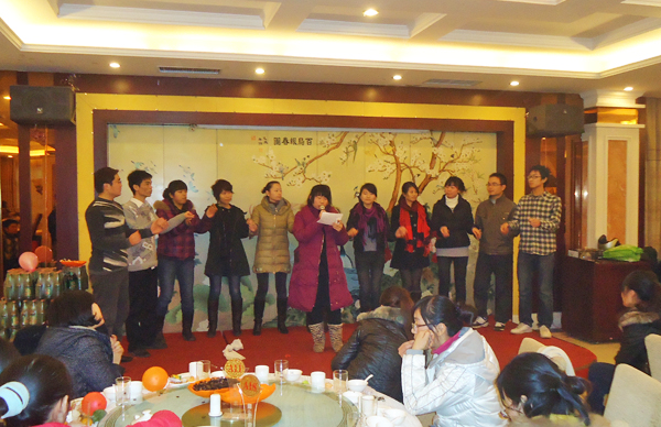 火爆三年慶典晚會,員工詩朗誦表演