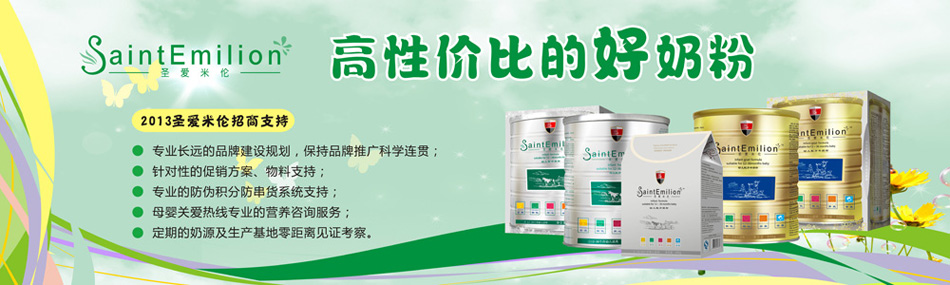 圣愛米倫精心挑選全球優(yōu)質(zhì)奶源及供應商資源,針對中國寶寶體質(zhì),專為中國寶寶用心配方,目前推出有機奶源嬰幼兒配方羊奶粉,100%進口奶源嬰幼兒配方牛奶粉兩大系列。陜西圣愛米倫乳品營銷有限公司面向全國空白市場區(qū)域誠招圣愛米倫經(jīng)銷商,招商政策如下。